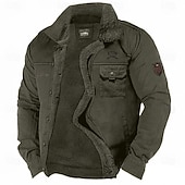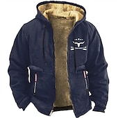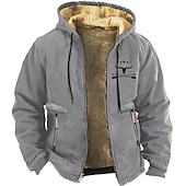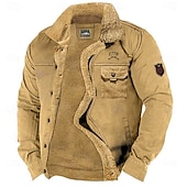 Men's Graphic 1776 Fleece Jacket Cargo Jacket Sherpa Jacket Thermal Warm Vintage Casual Outdoor Home Multiple Pockets Cotton Jackets Winter Coats Fall Winter Fleece Turn-Down Collar Long Sleeve khaki