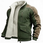 Men's Faux Suede Jacket Fleece Jacket Windbreaker Brown Suede Jacket Casual Casual Daily Windbreaker Patchwork Pocket Winter Spring & Fall Solid Color Vintage Fashion Stand Collar Regular Green