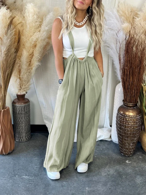 Loose Pleated Elasticated Front Zip Drawstring Jumpsuit