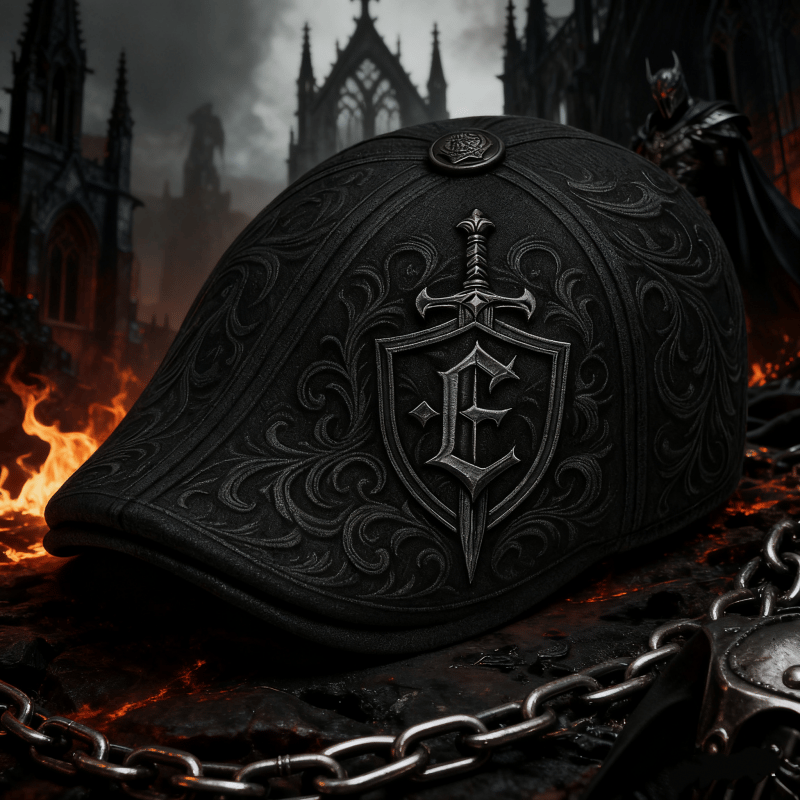 Crafted by Hand Embroidery-Knight’s Crest Flat Cap