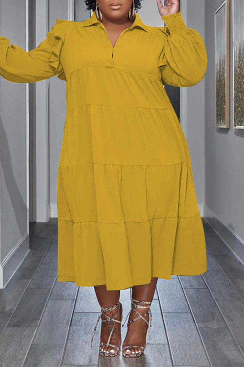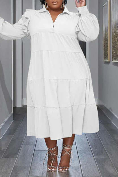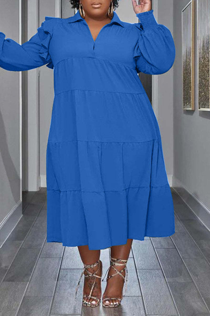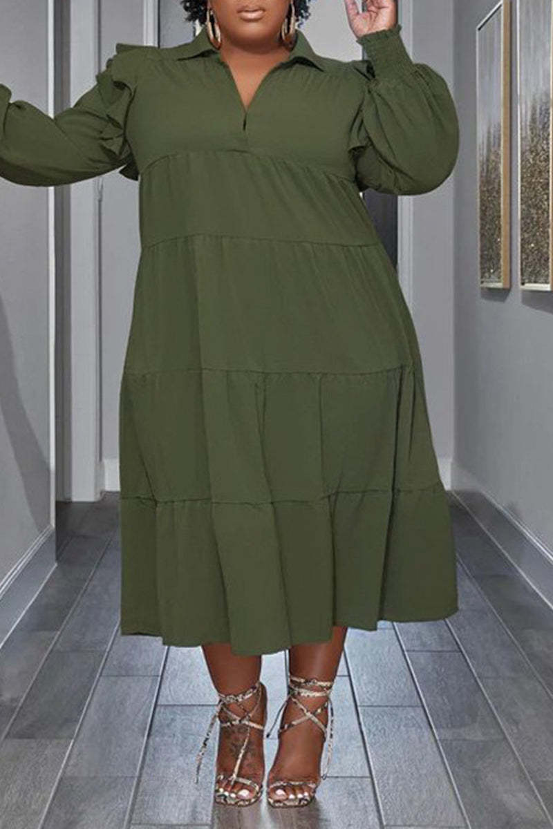 Flounced Sleeve Plus Size Turndown Collar Dress