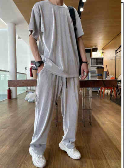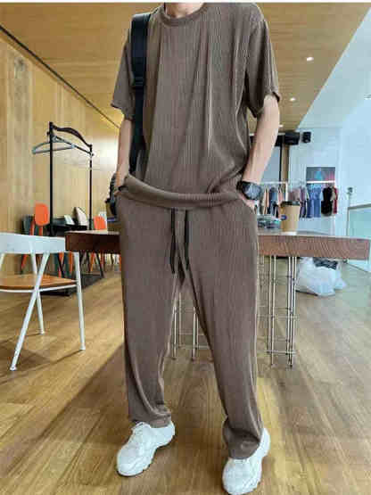 • Men's Elastic silky Casual 2-Piece Set × 1