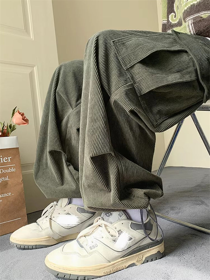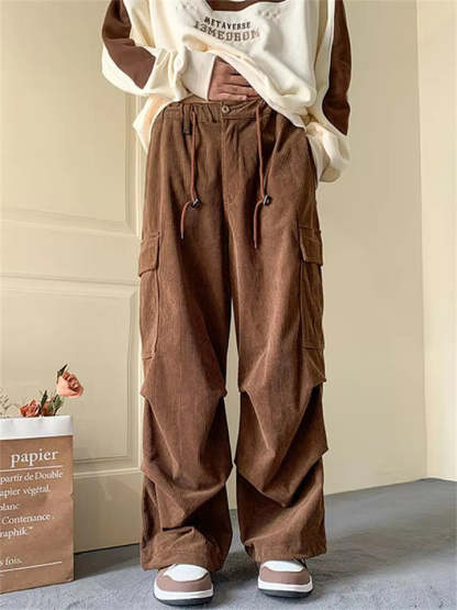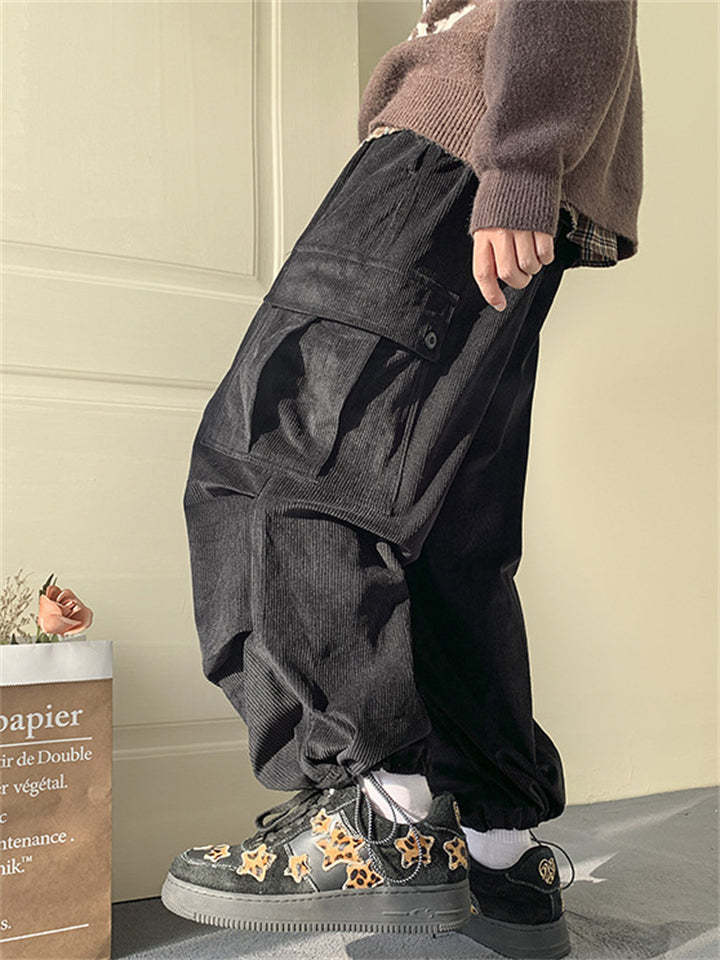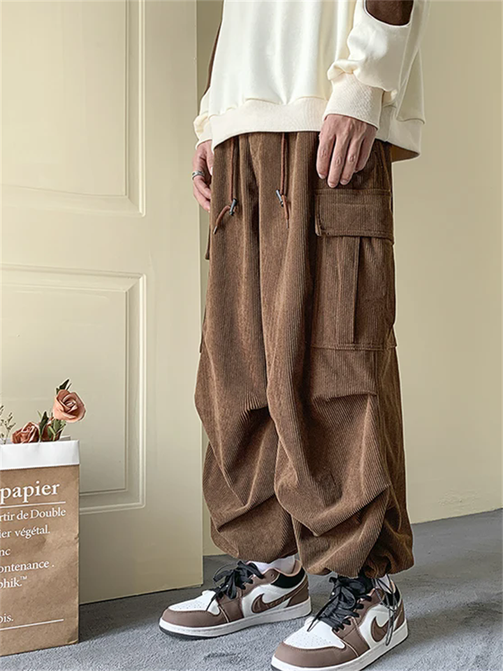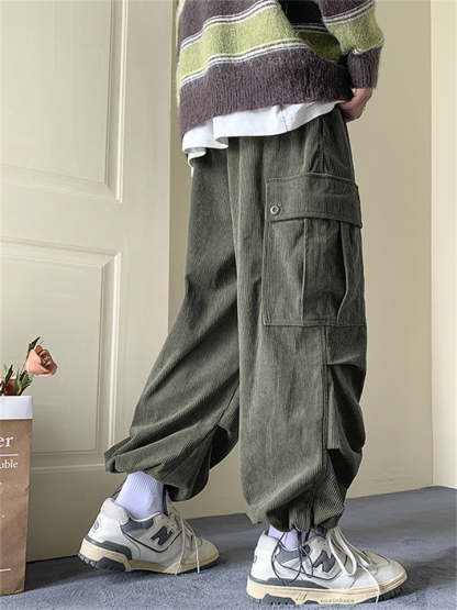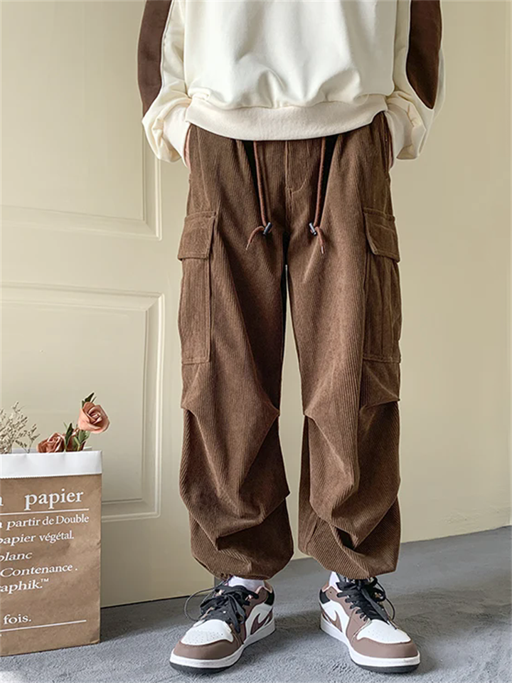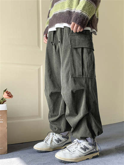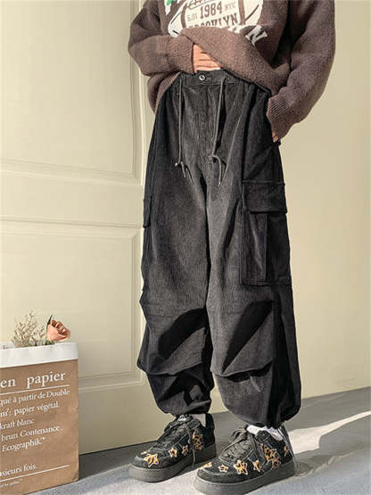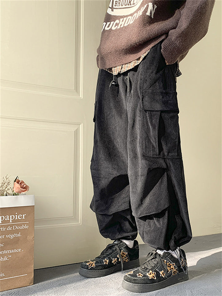 Men's Corduroy Lace Up Multi-Pocket Baggy Cargo Pants