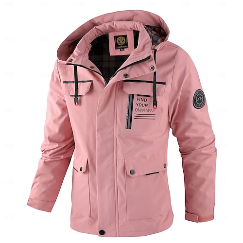 Men's Winter Coat Winter Jacket Sport Coat Raincoat Outdoor Camping & Hiking Waterproof Windbreaker Zipper Pocket Fall Winter Solid Color Fashion Streetwear Hooded Regular Wine Black White Army Green