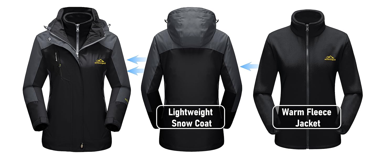 Versatile 3 In 1 Jacket: This women's snow jacket combines with waterproof coat women and fleece jacket inner. Both of them can be worn together or by it's own. Soft and breathable inner fleece jacket makes great heat retention, waterproof windproof winter jacket coat will keeping you warm and comfortable in cold weather