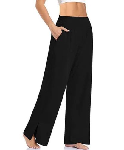 ✅ Wide-leg: Elasticated waistband for any wear. Loose fit, elastic waistband, straight leg, side slits, solid color, ankle length Flowy, wide-leg sweatpants are sure to attract compliments.